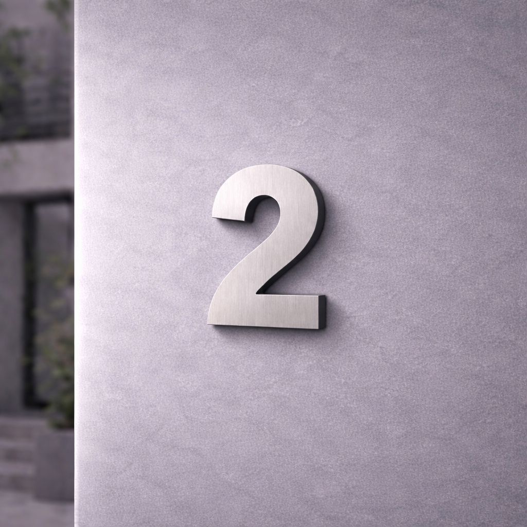 Tipo da placa: Placa predial de ACM com número 2 - MODELO 3D AÇO ESCOVADO- ALTO RELEVO