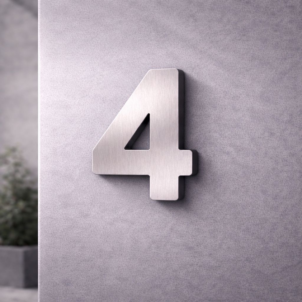 Tipo da placa: Placa predial de ACM com número 4 - MODELO 3D AÇO ESCOVADO- ALTO RELEVO