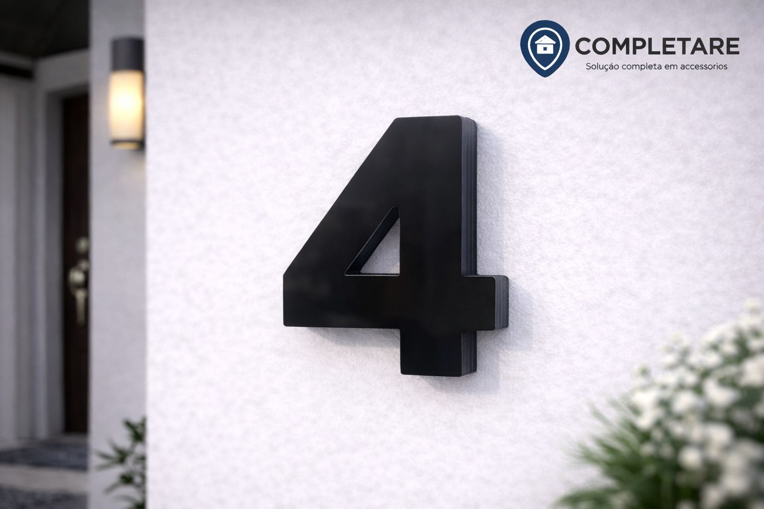 Tipo da placa: Placa predial de ACM com número 4 - MODELO 3D PRETO BRILHANTE - ALTO RELEVO