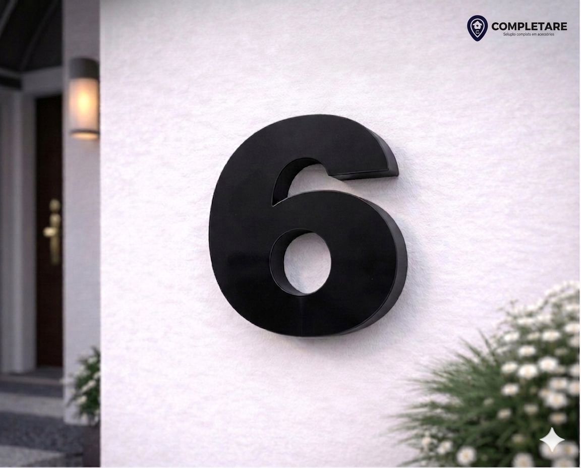 Tipo da placa: Placa predial de ACM com número 6 - MODELO 3D PRETO BRILHANTE - ALTO RELEVO