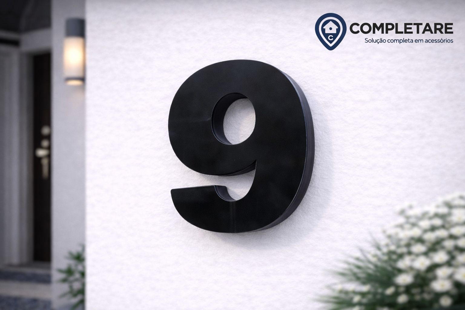 Tipo da placa: Placa predial de ACM com número 9 - MODELO 3D PRETO BRILHANTE - ALTO RELEVO