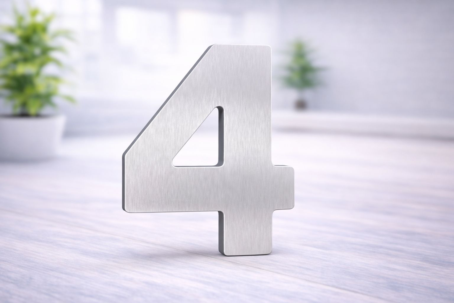 Tipo da placa: Placa predial de ACM com número 4 AÇO ESCOVADO FOSCO