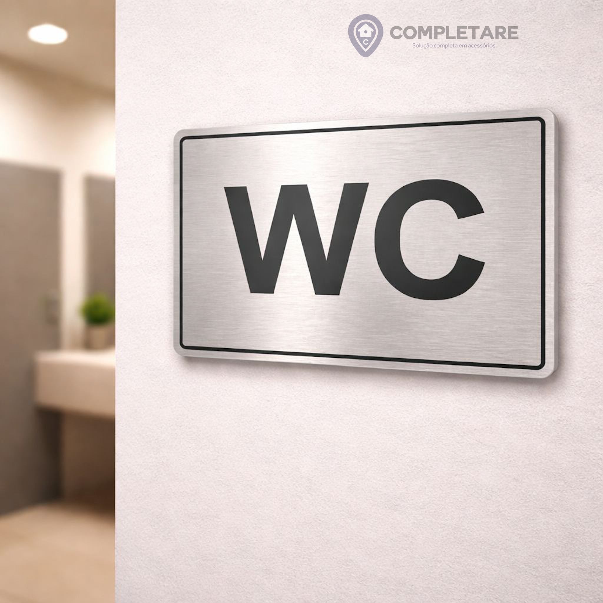 Placa Informativa "WC" em ACM Escovado – Fácil Instalação